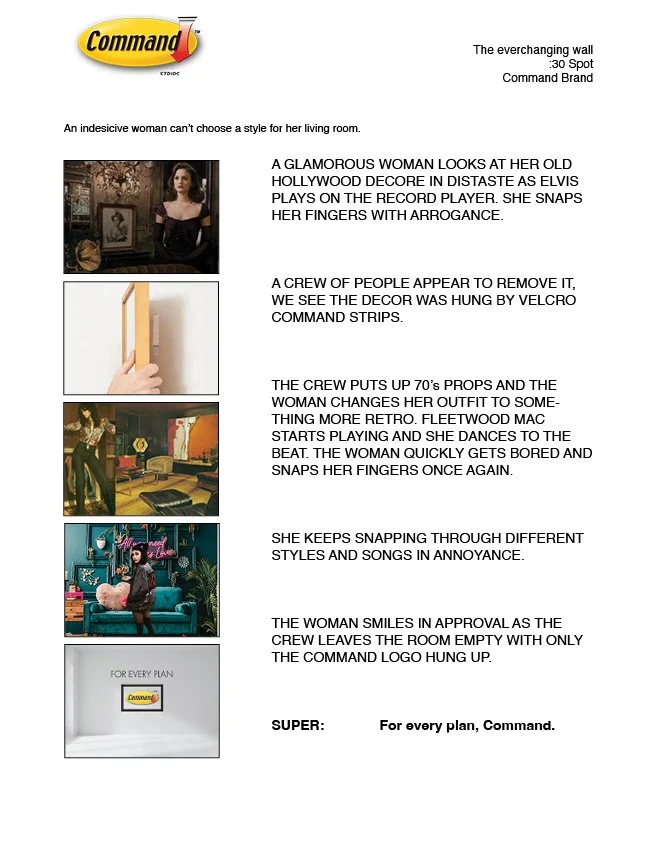 An indecisive woman can’t choose a style for her living room but has the privilege to switch it up instantly thanks to Command.